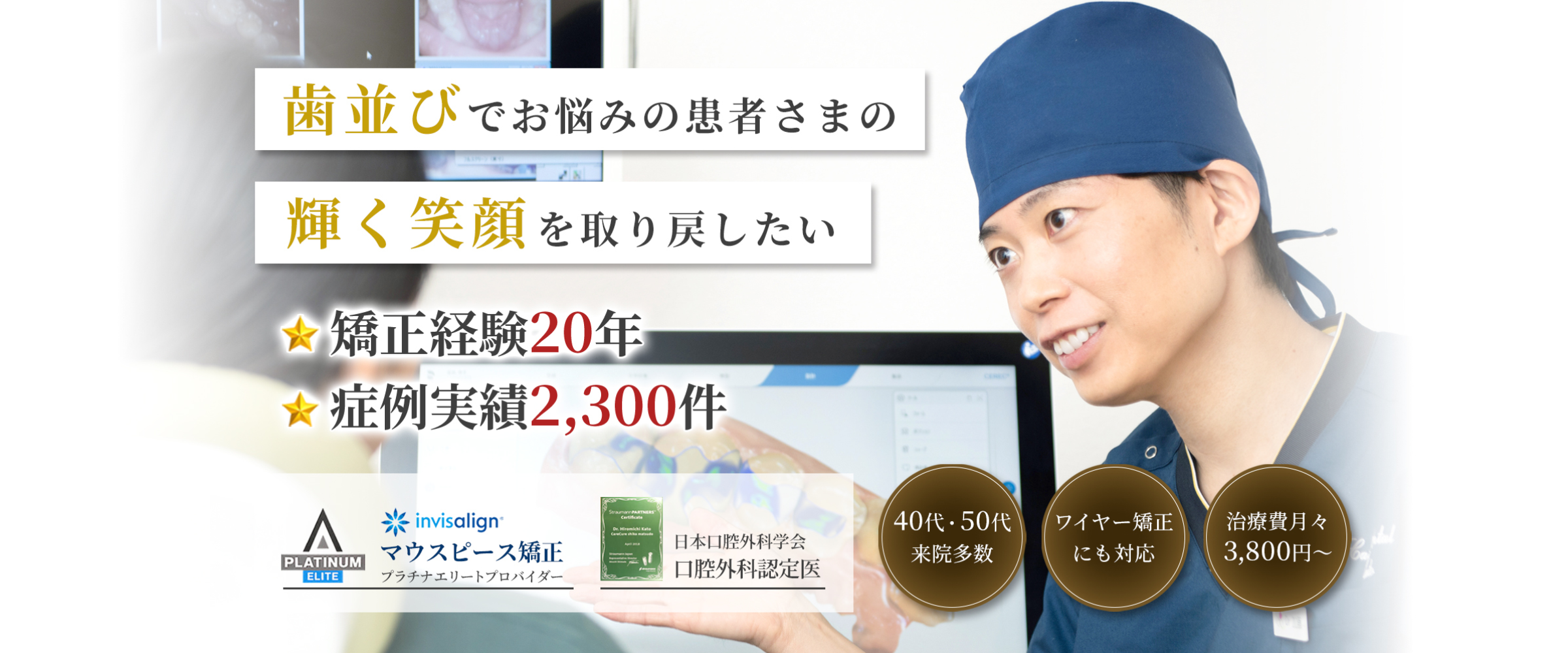当院では矯正歯科を専門に20年以上の経験を持つ矯正担当医と、「プラチナエリートプロバイダー」に認定された院長が、責任を持って治療にあたっています。