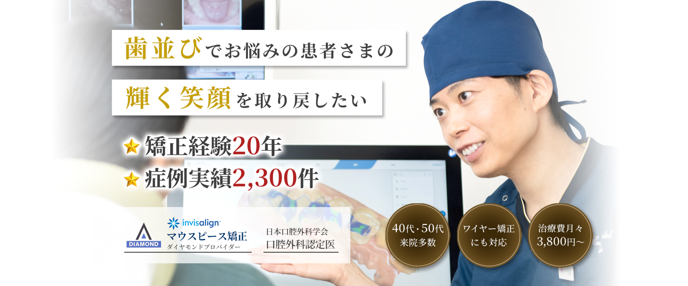矯正経験20年、2,300症例の院長が、本場米国で学んだ最新医療により、他院で断られた中度や重度の患者さまにもきれいな歯並びと輝く笑顔をお届けします。