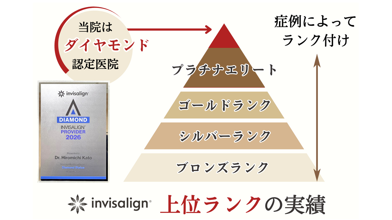 その点当院では、矯正歯科を専門に20年以上の経験を持つ矯正担当医と、「プラチナエリートプロバイダー」に認定され、インビザライン社公認で歯科医師への講演活動も行う実績豊富な院長が、数多くの40代・50代の矯正治療を成功に導いてきました。