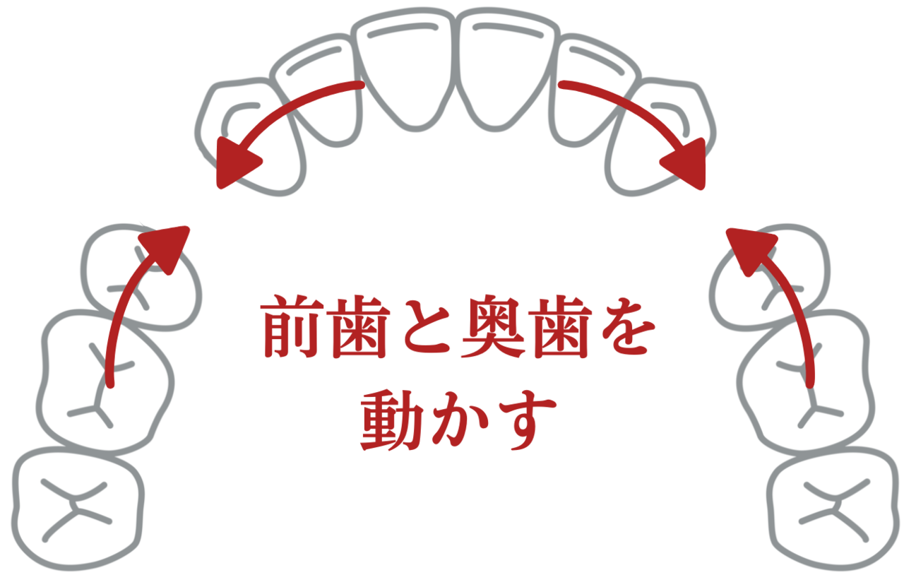 それにより空いたスペースに次の奥歯を動かし、さらに次の奥歯を動かします。