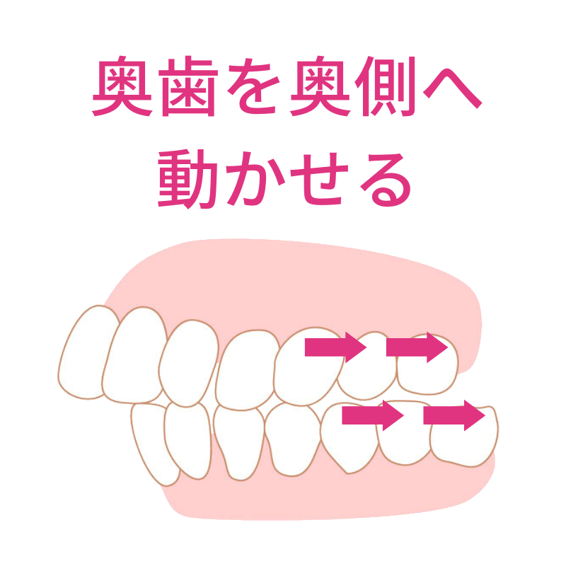 奥歯の噛み合わせ治療が必要な開咬の患者さまにとっては、「奥歯を動かせる」こともインビザラインの魅力の一つ。