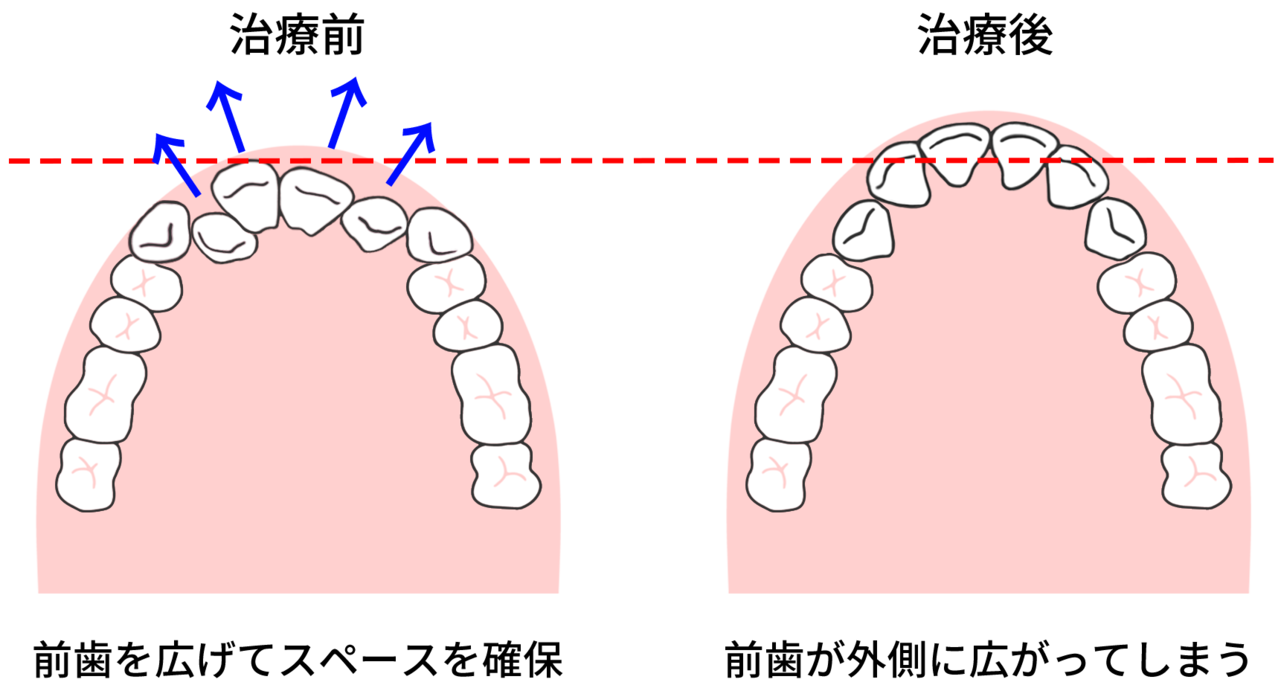 先ほどもお話ししたように、前歯を引っ込めるには、引っ込めるだけのスペースが必要。