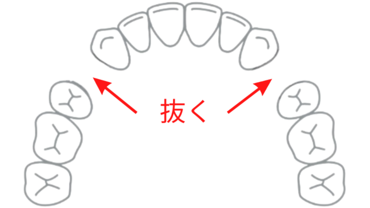 具体的には前から4番目の歯を抜いて、前歯を並べるスペースを生み出します。