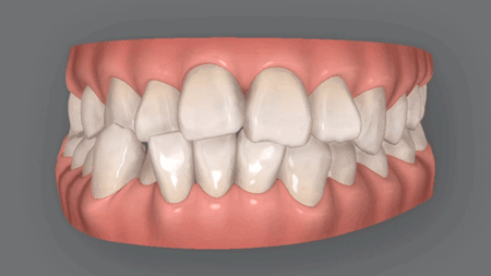 こうした症状の場合、当院では、まず最初に奥歯の傾きをまっすぐに矯正します。