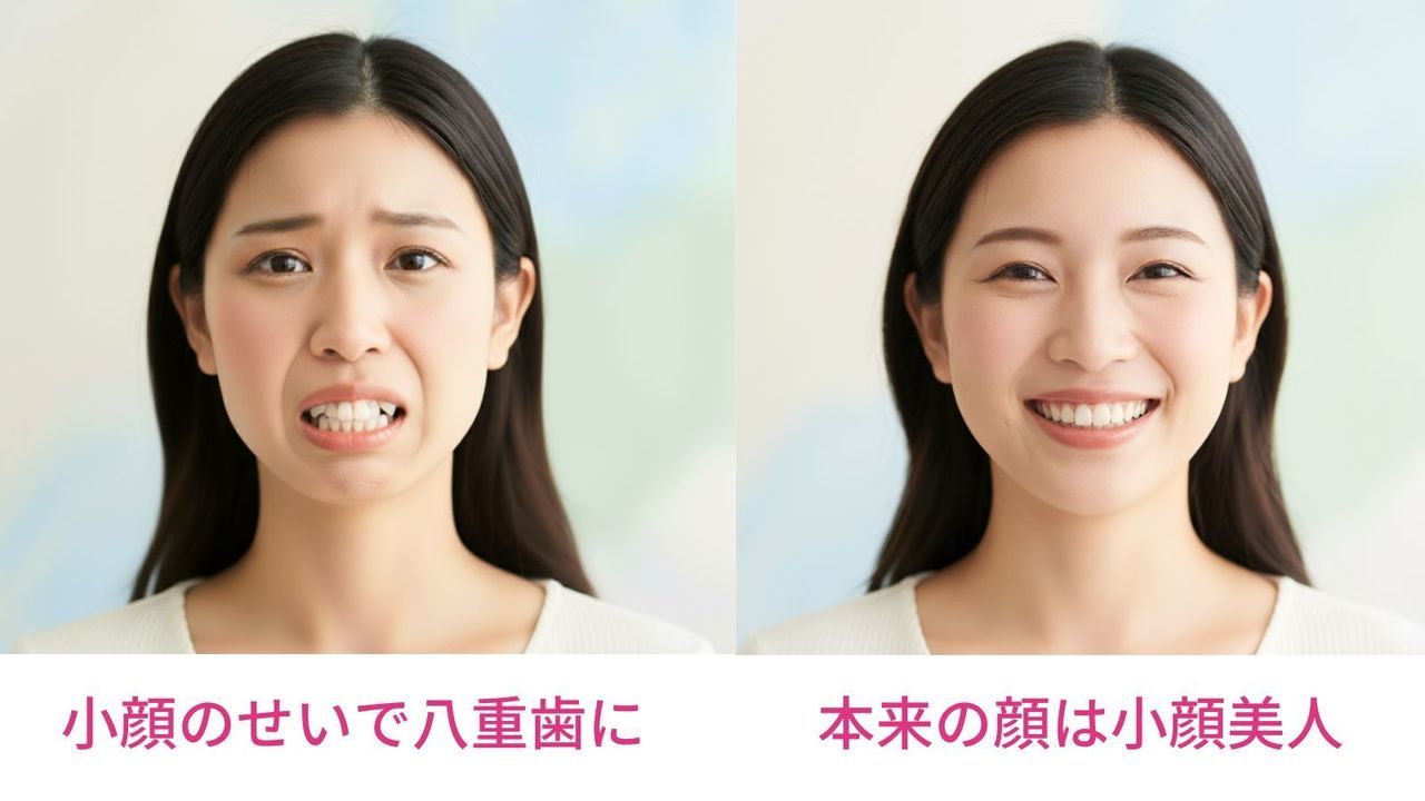 つまり本来は美人の条件である小顔のせいで、歯並びが悪くなってしまったという状況。